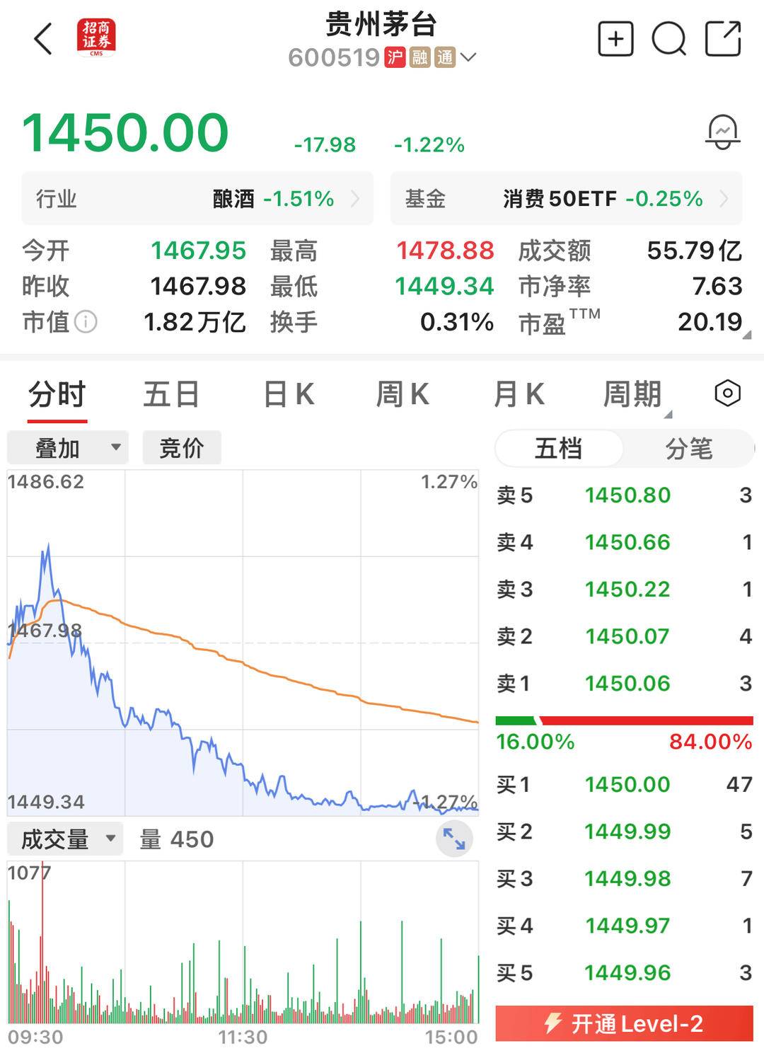 茅台集团市值1.82万余元。